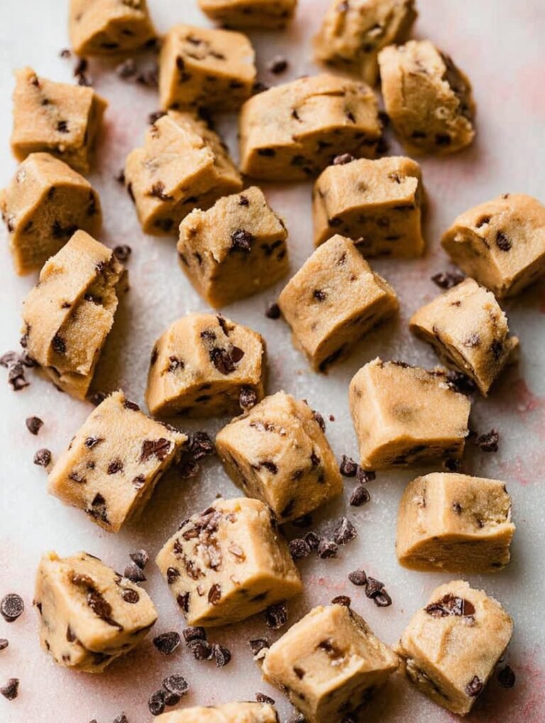 - Step 6: **Kühlen und Servieren:** Die Teigkugeln für mindestens 30 Minuten in den Kühlschrank oder für 15 Minuten ins Gefrierfach stellen, damit sie fest werden. Anschließend können die Cookie Dough Bites direkt verzehrt oder eingefroren werden.
