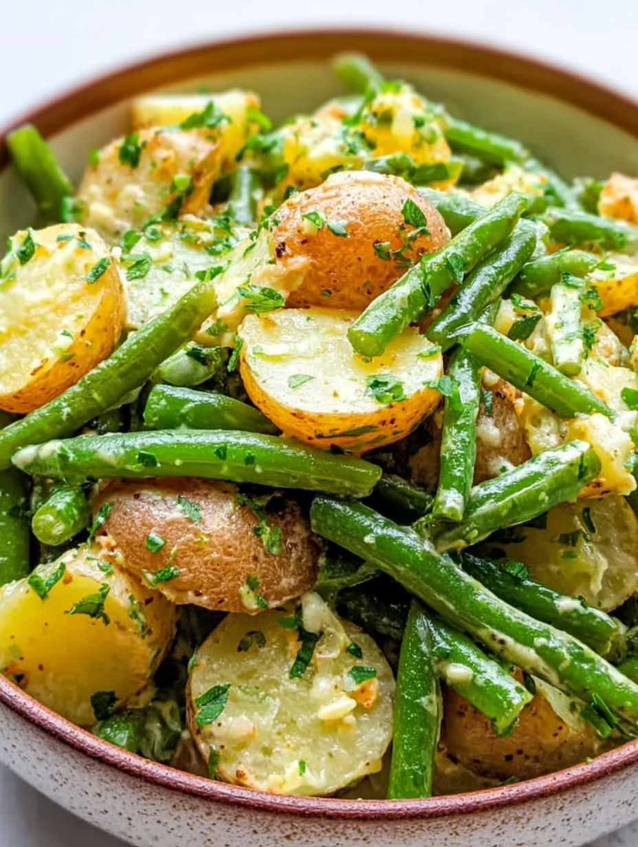 Cremiger Kartoffelsalat mit grünen Bohnen