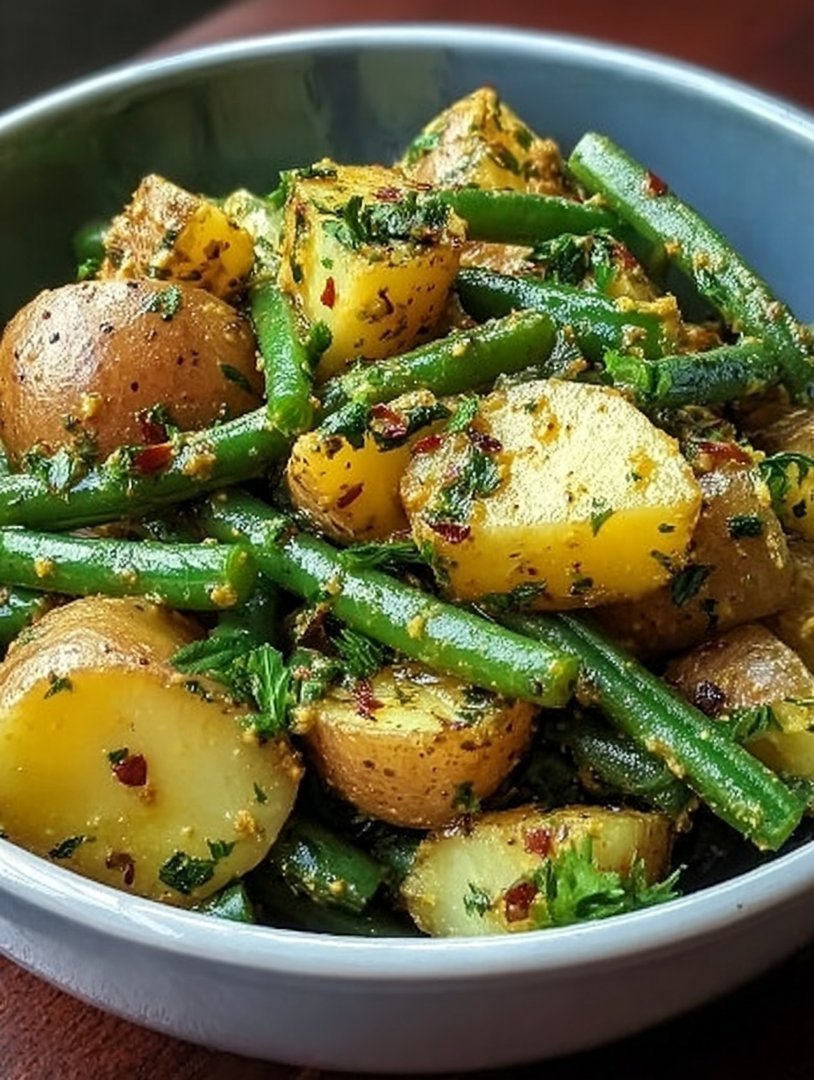 Grüner Bohnen-Kartoffelsalat mit Senf
