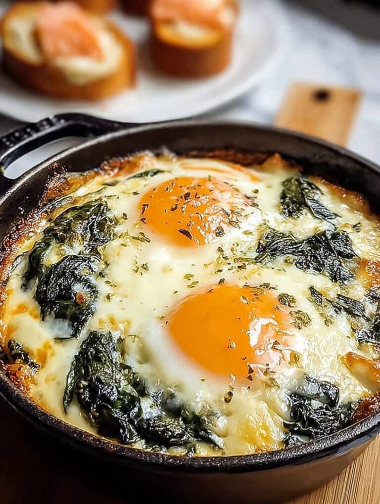 Dieses Gericht klingt nach einem Aufenthalt in einer toskanischen Villa, ist aber in Wirklichkeit so einfach zuzubereiten, dass es fast schon unverschämt ist. Es vereint cremigen, würzigen Spinat mit einem perfekt pochierten Ei, alles umhüllt von einer goldenen Käsekruste. Es ist die perfekte Kombination aus herzhaftem Frühstück und leichtem Mittagessen, das Ihre Gäste garantiert fragen lässt: „Wie lange hast du daran gesessen?“ Die Antwort? Nicht lang genug, um müde zu werden!