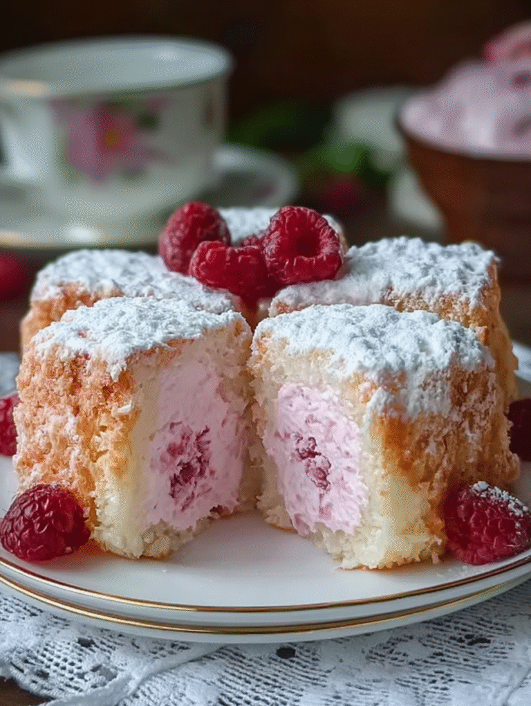 Egal, ob Sie ihn pur genießen oder kunstvoll dekorieren, dieser Himbeer-Engelskuchen wird Sie und Ihre Gäste begeistern. Er ist der Beweis, dass himmlische Desserts nicht kompliziert sein müssen. Viel Spaß beim Backen und Genießen Sie jeden luftigen Bissen dieses Meisterwerks!