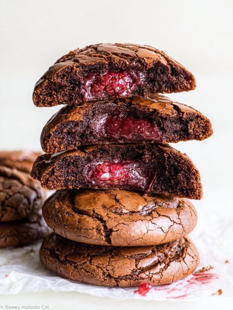 Die Gäste vergaßen den Hauptgang, als sie die erstenHimbeer-gefüllten Brownie-Kekseprobierten. Die Kombination aus intensivem, dunklem Schokoladenaroma und der säuerlichen, leicht warmen Himbeerfüllung war ein Treffer. Die Kekse waren außen leicht rissig und knusprig, innen weich und saftig – genau wie ein perfekter Brownie, aber in handlicher Keksform. Seit diesem denkwürdigen Missgeschick sind diese fruchtigen Schokoträume ein fester Bestandteil meines Repertoires. Sie sind der Beweis, dass man manchmal einfach nur mutig sein und die Küchenfehler als Chance zur Innovation sehen muss.