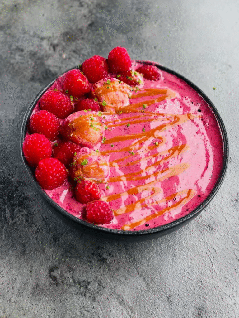 Die Himbeer-Smoothie-Bowl! ist der Beweis, dass ein gesundes Frühstück nicht kompliziert oder langweilig sein muss. Mit minimalem Aufwand und den richtigen gefrorenen Zutaten kreieren Sie einen lebendigen, cremigen Start in den Tag, der reich an Geschmack und Nährstoffen ist. Denken Sie daran, dass die Textur alles ist: Seien Sie geizig mit der Flüssigkeit und großzügig mit den Toppings, um dieses himmlische Geschmackserlebnis zu maximieren. Diese Bowl ist nicht nur ein Essen, sondern ein echter Gute-Laune-Macher, der selbst den grauesten Morgen in einen sonnigen Moment verwandelt. Probieren Sie es aus und werden Sie selbst zum Smoothie-König oder zur -Königin!