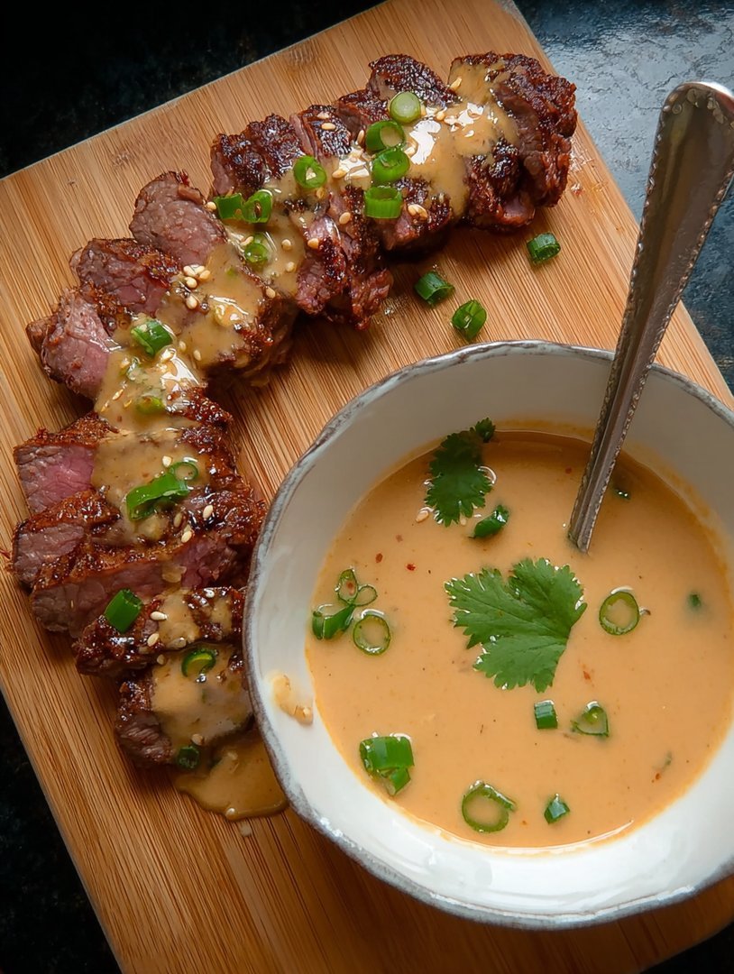 Diese Japanische Steaksoße vereint dunkle Sojasauce, süßen Reiswein und frischen Knoblauch/Ingwer zu einem tiefen Umami-Kick. Schnell im Topf zubereitet, veredelt sie jedes Steak.