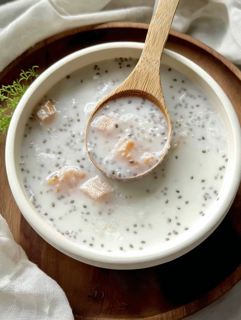 Vergessen Sie alle Diätvorsätze, denn dieseKokos-Tapioka-Taro-Suppeist ein Erlebnis für die Seele. Es duftet nach tropischer Sonne und einem Hauch von Abenteuer, perfekt für graue Tage, die dringend eine Dosis Exotik benötigen.