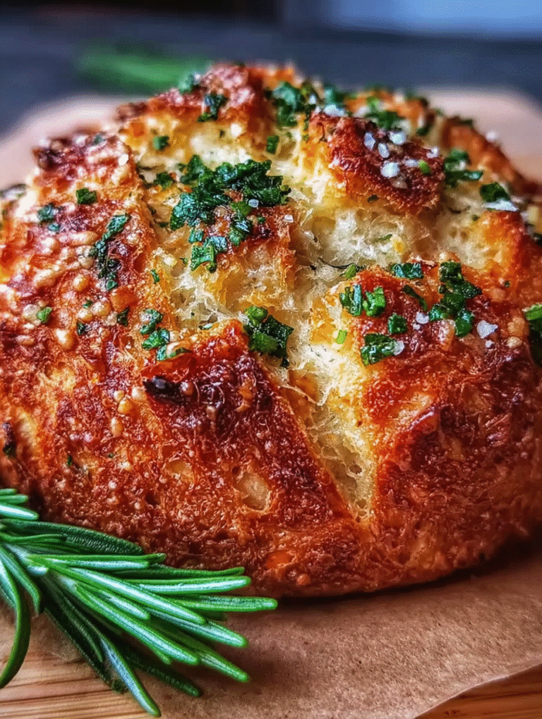 Servieren Sie das Brot sofort, solange die Butter noch blubbert und der Käse Fäden zieht. Schneiden Sie es in dicke Scheiben und genießen Sie es als Hauptbeilage zu einer reichen Tomatensuppe oder einem cremigen Hühncheneintopf.