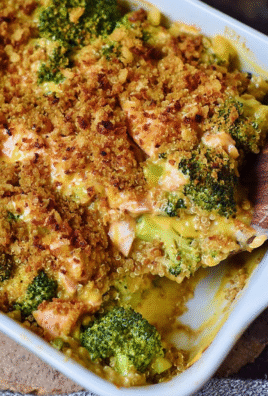 Bewahren Sie Reste des Auflaufs im Kühlschrank in einem luftdichten Behälter bis zu drei Tage auf. Zum Aufwärmen etwas Brühe oder Milch hinzufügen, damit er cremig bleibt. Bei 150 °C im Ofen oder kurz in der Mikrowelle erhitzen, bis er durchgewärmt ist.