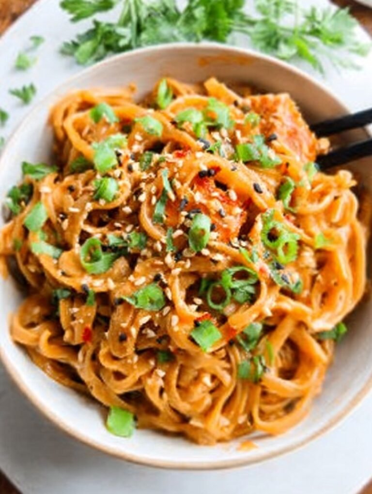 - Step 5: Die Scharfen Erdnussbutter-Nudeln sofort servieren. Optional können sie mit gerösteten Erdnüssen, Sesam oder geschnittenen Frühlingszwiebeln garniert werden.