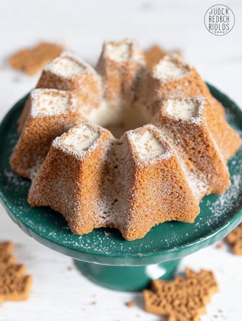 - Die festliche Optik, gekrönt mit zerbröselten Spekulatius-Keksen, macht diesen Kuchen zum strahlenden Mittelpunkt jeder Kaffeetafel.