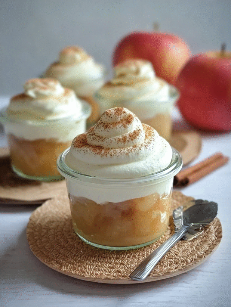 Obwohl Sie gekauftes Apfelmus verwenden können, empfehle ich, ihm ein kleines Upgrade zu verpassen. Geben Sie das Mus in einen kleinen Topf und erwärmen Sie es bei niedriger Hitze. Fügen Sie eine Prise fein geriebene Zitronenschale hinzu – das verstärkt die fruchtige Note und verhindert, dass das Dessert zu süß wirkt. Manche mögen auch eine winzige Prise Nelkenpulver im Apfelmus, aber seien Sie vorsichtig, damit der Zimt der Creme nicht überdeckt wird. Das Apfelmus sollte warm, aber nicht kochend heiß sein, wenn es auf die kalte Zimtcreme trifft. Dieser Temperaturkontrast ist ein großer Teil des Genusses.